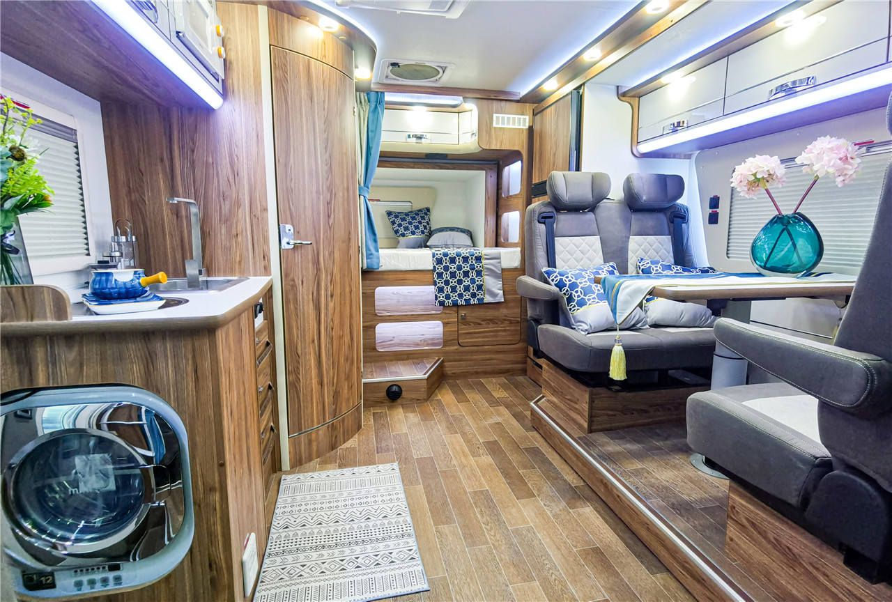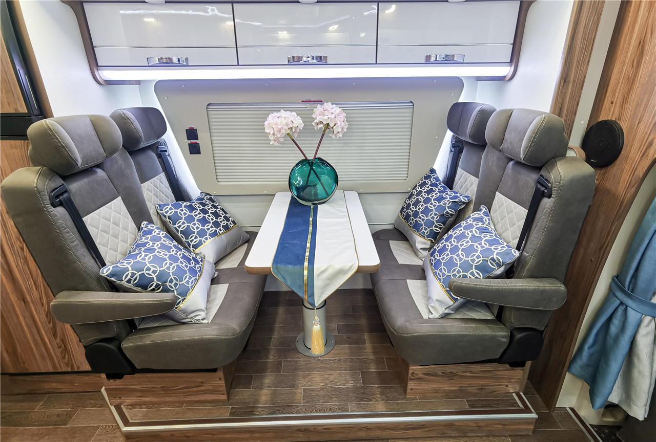 | 正副駕駛椅包 (中間菱形格) | 豪華衛(wèi)浴間 (ABS吸塑工藝) | 升降桌板(進(jìn)口單腿) | ||||||